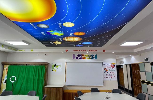 Üretim alanında ise hayal ederek ,keşfederek kendi tasarımlarını, yaparak yaşayarak video kamera çekimi, yeşil ekran ve 3d yazıcı ile oluşturdukları tasarımları gerçekleştirdiler.